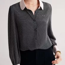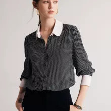 Add this 100% silk polka dot blouse to your wardrobe today and experience the perfect blend of elegance, comfort, and sophistication. Its timeless style and luxurious fabric make it an essential piece for any office lady or woman who loves chic fashion. Order now and step into a world of effortless style!