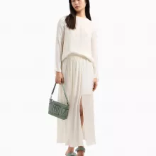 The Armani Exchange Women’s Beige Blouse stands out for its premium 100% viscose fabric, offering a luxurious, silky feel against the skin. Its timeless design ensures versatility, making it easy to dress up with tailored trousers or down with your favorite jeans. Designed for the modern woman who values elegance and comfort, this blouse is a true wardrobe staple.