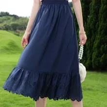 Indulge in the beauty of simplicity and sophistication with our Blue High Waist A-line Cotton Lace Patchwork Summer Skirt. Elevate your everyday look or dress it up for special occasions with ease.
