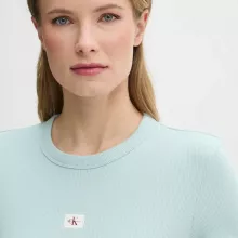 This Calvin Klein Jeans t-shirt is not just any basic tee – it’s an investment in comfort and style. The organic cotton ensures you’re wearing a product that’s both good for you and the environment. The elastane provides a perfect fit, offering freedom of movement without feeling too tight or too loose. The light blue color adds a refreshing touch to your wardrobe, making it ideal for pairing with everything from shorts to skirts to jeans. Whether you’re running errands or meeting friends, this t-shirt will keep you comfortable and stylish all day long.