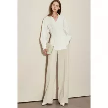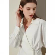 • Unique Design: Asymmetrical decoration and puff sleeves add a modern twist to the classic blouse.