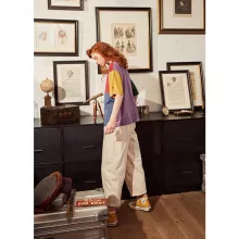 Don’t miss out on the opportunity to add this enchanting vintage tee to your wardrobe. Its unique design and quality craftsmanship make it a must-have for any fashion enthusiast. Tap into the world of vintage elegance and comfort—order your Color Block Cotton Tee with Embroidered Cuffs today!