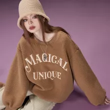 This fleece pullover is more than just a sweatshirt; it’s a wardrobe essential for the cooler months. The soft, cozy fabric feels luxurious against your skin, and the relaxed, loose fit offers both comfort and style. Whether you’re heading to a coffee date or just relaxing at home, this top ensures you look and feel your best. Plus, the playful patch designs make it stand out from the crowd, adding personality to your casual looks.