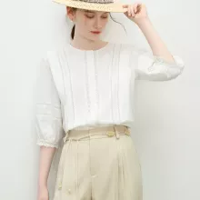 - Design: Mid-length lantern sleeves, O-neck collar, and regular length cut