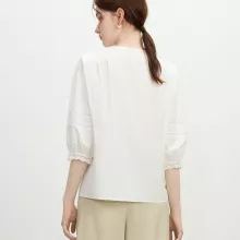 This blouse shines during warm spring days and breezy summer evenings. Pair it with tailored trousers for a refined office look, or style it with jeans and flats for a relaxed weekend vibe. Heading out in the evening? Add a sleek skirt and delicate accessories to elevate your ensemble. From coffee dates to gallery strolls, this blouse brings beauty and breathability to every moment.