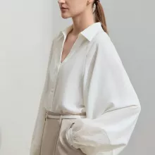 Pair this blouse with tailored trousers for a chic office outfit, or wear it with jeans for a more relaxed, casual look. The minimalist design makes it easy to accessorize, so you can create different looks to suit your personal style. Available in a variety of sizes, this blouse is designed to flatter a range of body types, making it a must-have for any wardrobe. Don’t miss out on the opportunity to own a piece that combines both style and practicality.