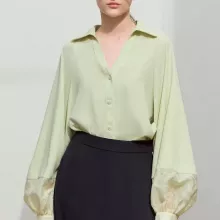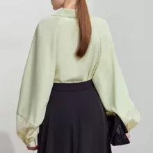 This chic and elegant chiffon blouse is the perfect addition to your wardrobe this spring. With a minimalist design that exudes sophistication, this long sleeve top features a flattering turn-down collar and lantern sleeves, making it a versatile piece for both casual and office wear. Whether you’re dressing up for a day at the office or looking for a stylish yet comfortable option for lunch with friends, this blouse is designed to keep you looking polished and feeling at ease.