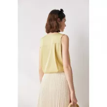 Step into summer with style in our Elegant Summer Silk Blouse. Designed for the sophisticated woman, this blouse is a perfect blend of luxury and functionality, tailored to enhance your wardrobe with a touch of elegance. Its sleek, sleeveless design and smooth V-neck collar make it a stellar pick for both office wear and casual outings.