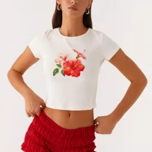 Elevate your warm-weather wardrobe with our Floral Print Slim Fit Crop Top, a stylish staple designed to make you feel confident, fresh, and effortlessly trendy. Featuring a delicate flower print on soft, breathable fabric, this crop tee is your go-to choice for sunny strolls, brunch dates, music festivals, or laid-back streetwear looks. Its flattering slim fit hugs your curves just right, giving you that confident, sculpted silhouette without compromising on comfort.