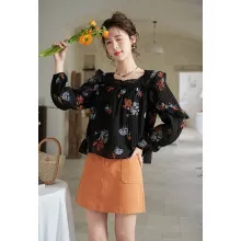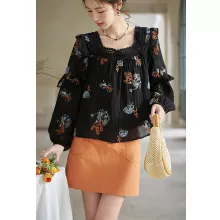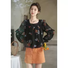 This blouse stands out with its intricate floral embroidery and delicate lace decoration, adding a feminine and sophisticated touch to your look. The square collar and puff sleeves create a flattering silhouette, while the short length (4-16 inches) ensures a perfect balance between casual and chic.