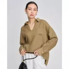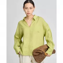 Linen V-neck Long Sleeved Shirt for Women