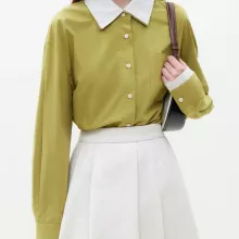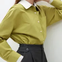 The 100% cotton fabric is soft and breathable, making this blouse the perfect choice for layering during the winter months. Its polo-neck collar adds a sophisticated element that elevates your look, while the single-breasted closure maintains a streamlined and flattering silhouette. This blouse is a must-have for any woman looking for versatile, comfortable, and stylish options for the cooler season.