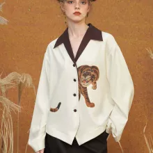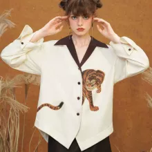 Embrace effortless style and bold design with this Spring and Autumn Loose Fit Japanese Style Tiger Print Blouse. Featuring an eye-catching color block design and a striking tiger print, this blouse effortlessly blends modern style with traditional influences. Whether you’re dressing up for a casual outing or adding a unique touch to your everyday wardrobe, this piece will make a statement. The loose, comfortable fit ensures all-day ease, while the original design adds a layer of sophistication to your look. Perfect for the transitional seasons, this blouse is a must-have addition to your collection.