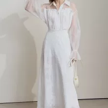 - Design: A stylish turn-down collar and single-breasted closure, complemented by full lantern sleeves for an elegant touch.