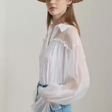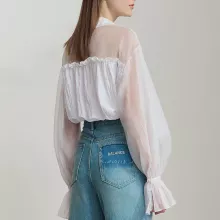 This blouse is designed for the modern woman who values both comfort and style. The loose fit ensures all-day comfort, while the refined design exudes confidence and elegance. The lightweight fabric is breathable, making it ideal for warmer weather, and its relaxed style is perfect for both professional and casual settings. The balloon sleeves add a unique touch, giving the blouse a fashion-forward feel that stands out without being overly bold.