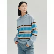 Embrace the cooler months in style with our Striped Hooded Blue Sweater, designed specifically for the modern woman who values comfort without compromising on style. Crafted from a luxurious blend of 25.6% cashmere and 74.4% wool, this sweater epitomizes the fusion of warmth and elegance. Its thick, regular yarn ensures durability and coziness, making it perfect for the autumn and winter seasons.