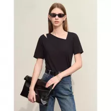 What sets this tee apart is its asymmetric design and elegant neck cut, providing a fresh take on the classic summer tee. The split sleeves add a modern twist, making it a standout piece in your wardrobe. It’s not just a tee; it’s a statement of style and comfort.