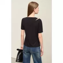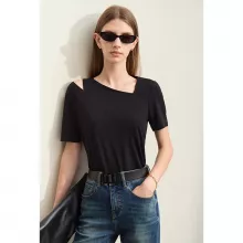 This tee is crafted with precision to offer not just style but also comfort and durability. The hollow-out decoration subtly enhances its elegance, while the medium stretch fabric ensures a perfect fit without compromising on comfort. Made from a blend of spandex, viscose, and polyamide, it promises breathability and flexibility throughout the day.