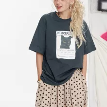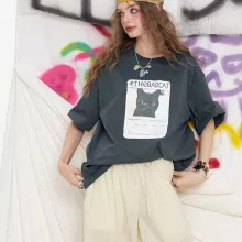 This tee is all about comfort. Crafted with a lightweight knitted cotton fabric, it offers a non-stretch yet cozy feel that drapes gently over the body. The regular-length cut pairs perfectly with jeans, shorts, or even tucked into skirts. Its O-neck collar and short sleeves (4–16 inches in length) ensure a classic fit with a touch of playful charm thanks to the eye-catching cartoon print.