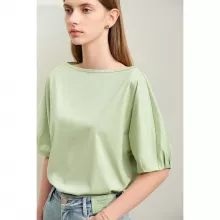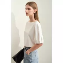 Our casual top is crafted from high-quality mercerized cotton, ensuring a soft touch and a comfortable fit. The non-stretch fabric hangs beautifully, offering a flattering loose fit that moves with you. The solid color design keeps it simple and easy to pair with any outfit, while the short lantern sleeves provide a modern twist on a classic style.