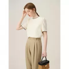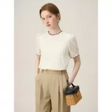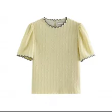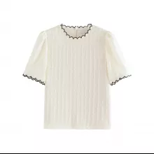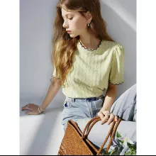 The blend of 99.3% Polyester and 0.7% Spandex offers a breathable, lightweight feel that keeps you cool during the warmer months. With its slim fit design, this top flatters your figure while providing a touch of elegance through its delicate wave cut decoration and enchanting lace neckline.