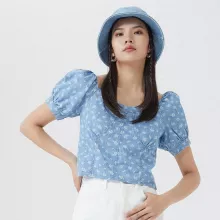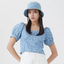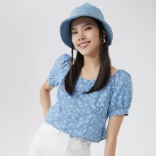 What sets this crop top apart is its combination of classic denim with a fresh, floral pattern, offering a modern twist on traditional summer wear. The non-stretch fabric maintains its shape, providing a flattering fit each time you wear it. Its distinctive design is crafted without additional decorations, allowing the pattern and shape to speak for themselves—simplicity at its best.
