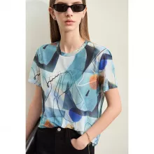 Our T-shirt stands out due to its high-quality construction and unique design elements. The mesh fabric not only enhances comfort but also provides a subtle, see-through aesthetic that’s both attractive and modest. The high-stretch material ensures a flattering fit for all body types, while the vintage-inspired geometric patterns offer a distinctive style that won’t be found in everyday wear.