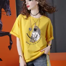 Step into summer with confidence and comfort in this eye-catching yellow oversized cotton T-shirt. Designed for those who love to make a style statement, this breathable streetwear tee is all about relaxed vibes and standout details. Featuring a fun sequin cartoon smiley face on the chest, it’s the perfect combination of casual and playful. Made from 100% pure cotton, this top offers the ultimate comfort during warm weather while keeping your style effortlessly cool.