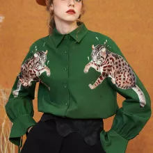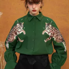 Embrace effortless elegance with this vintage-inspired leopard jacquard blouse. Crafted from soft, breathable cotton, this blouse combines fashion-forward design with everyday comfort. Perfect for the transitional seasons of autumn and spring, this blouse provides the ideal balance of warmth and breathability, making it a versatile addition to any wardrobe.
