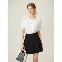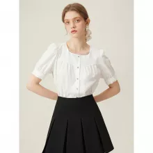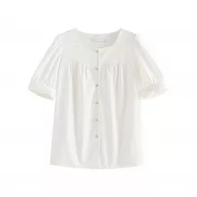 Elevate your summer style with our White French Square Collar Shirt. Designed for the modern woman who values both elegance and comfort, this shirt effortlessly combines sophistication with trendy details.