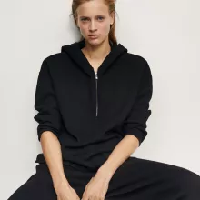 This sweatshirt is designed with a slightly loose fit that drapes naturally over your body, offering comfort without compromising on shape. Whether you’re lounging at home, running errands, or meeting friends for coffee, this stylish knit hoodie keeps your look effortlessly polished. The solid color design and clean lines make it easy to layer with your favorite jeans, leggings, or skirts — a true go-to for any casual outfit.