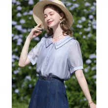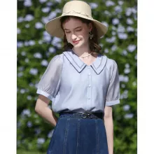 • Elegant Design: Featuring delicate French embroidery on a solid color base, the blouse exudes a refined aesthetic. The turn-down collar and single-breasted closure add a classic touch.