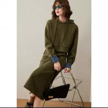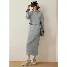 This hooded dress set is more than just a fashion statement; it’s a versatile addition to your wardrobe. The blend of materials ensures a comfortable fit that moves with you, while the color-block design keeps you on-trend. The mid-calf length skirt is perfect for both casual outings and more formal occasions, making it a versatile piece for any wardrobe.