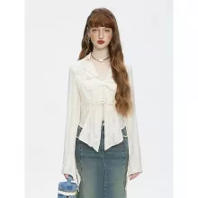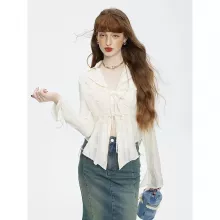 Crafted from a luxurious blend of cotton and polyester, the fabric ensures a lightweight feel, making it comfortable for all-day wear. The broadcloth material and slim fit design accentuate your silhouette, while the hollow-out details and bow lace-up feature add a touch of sophistication and charm. The turn-down collar and regular sleeve style complete the look, making it a versatile piece for various outfits.