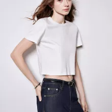 The solid color design and minimalist style make it highly versatile, allowing you to pair it with everything from trousers to skirts, or even your favorite denim jeans. It’s easy to dress up with accessories or keep it casual for everyday wear. With the classic O-neck collar and short sleeves, this T-shirt offers the right balance of elegance and comfort—just what you need for your spring and summer wardrobe.