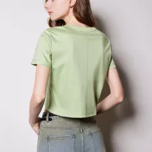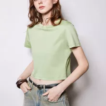 Upgrade your spring and summer wardrobe with this Women’s Short Sleeve Silk T-Shirt. Crafted from soft cotton and designed with a round neckline and short sleeves, this top brings comfort and style into perfect harmony. Whether you’re at the office or enjoying a sunny weekend, this short top is an ideal pick for those looking to stay cool while looking effortlessly chic.