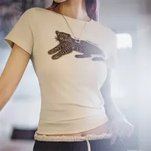 This tee blends casual streetwear vibes with a flattering fit and bold personality. Made from a high-quality cotton-spandex blend, it offers just the right amount of stretch for all-day comfort. The slim fit and crew neck design give it a flattering silhouette, while the unique animal print adds an eye-catching twist to a timeless basic. It’s not just a tee—it’s a conversation starter.
