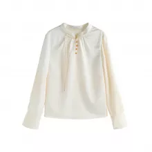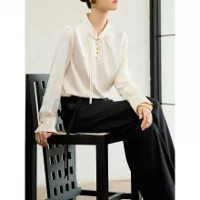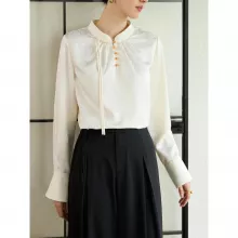 This blouse stands out for its perfect mix of classic design and contemporary comfort. The stand collar adds a unique, elegant touch that harks back to traditional Chinese style, while the button detailing elevates its simplicity. The slight stretch in the fabric ensures a comfortable fit without compromising on style, making this blouse an ideal choice for all-day wear. It’s an easy-to-style piece that transitions seamlessly from the office to dinner, offering the versatility and elegance every woman desires in her wardrobe.