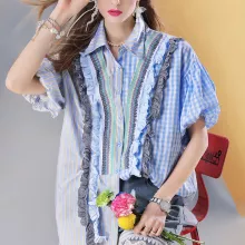 Turn heads and elevate your casual streetwear style with this eye-catching Women’s Striped Patchwork Blouse. Designed for those who crave individuality and comfort, this mid-length button-down shirt is the perfect blend of laid-back charm and statement fashion. Featuring a playful mix of stripes and plaid patterns, soft ruffles, and voluminous puff sleeves, it delivers a unique silhouette that feels as good as it looks.