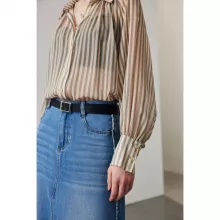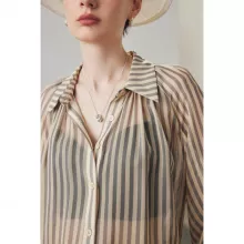 Step into the season with our Women’s Striped Silk Casual Shirt, a perfect blend of classic style and modern sophistication. Designed for the fashion-forward woman, this top features transparent raglan sleeves that add a subtle allure to your wardrobe. Ideal for both office and casual settings, this shirt is a versatile addition to your spring and summer collection.