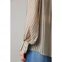What sets this shirt apart is its commitment to quality and style. The non-stretch silk fabric drapes beautifully, creating an elegant silhouette that moves with you. The striped pattern is not just visually appealing but also versatile, making it easy to pair with a variety of bottoms and accessories. Whether you’re dressing up for the office or dressing down for a casual outing, this shirt is your go-to choice.