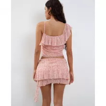 Embrace the nostalgia of the early 2000s with our Y2K Fairycore Floral Two-Piece Outfit. This enchanting ensemble pairs a sleeveless crop top with a flirtatious ruffle layered mini skirt, both adorned in a vintage-inspired floral print. Designed for the fashion-forward woman, this coquette matching set is perfect for showcasing your playful and spirited style during the warmer months.